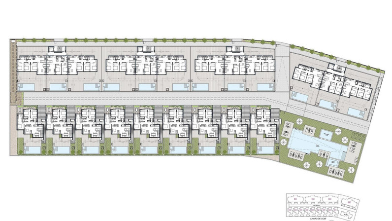 New Build Golf Front Apartments and Villas in La Serena Golf Los AlcazaresExclusive Residential Development Frontline to La Serena GolfDiscover this exceptional new build residential development located frontline to La Serena Golf in Los Alcazares, one of the most desirable coastal towns on the Costa Calida. This exclusive community offers a premium lifestyle surrounded by nature, open views and direct access to a renowned 18 hole golf course known for its flat terrain, scenic lakes and technical challenges.Ideally situated just 1.7 km from the beaches of the Mar Menor and the town center, residents can enjoy both tranquility and easy access to restaurants, shops and all essential services. Los Alcazares is well known for its relaxed atmosphere, long promenades and warm shallow waters, making it perfect for year round living or holiday stays.Modern Apartments with Terraces and Private SolariumsThe development includes 36 contemporary apartments distributed across four blocks. Buyers can choose between two or three bedroom layouts with two bathrooms, including an en suite.Ground floor apartments feature spacious terraces with the option to add a private pool. Middle floor units offer generous outdoor terraces, while penthouses include private solariums ideal for sunbathing and outdoor dining.All apartments include underground parking and a storage room with elevator access. The community also offers beautifully landscaped Mediterranean gardens and a large communal swimming pool for residents to enjoy.Stylish Single Level Villas with Private PoolIn addition to the apartments, the development offers nine exclusive single level villas. These homes feature three bedrooms, two bathrooms and an additional guest toilet, all designed to provide seamless indoor and outdoor living.Each villa includes a private swimming pool, garden, storage room and private parking. A spacious open basement provides additional flexible space that can be adapted to suit individual needs such as a gym, entertainment area or extra storage.High Quality Finishes and Energy Efficient DesignAll properties are built with high quality materials and modern specifications. Features include aluminum exterior carpentry with thermal break, fully equipped bathrooms with vanity units and glass shower screens, and pre installation for ducted air conditioning and furnished kitchens in apartments.Villas come with fully installed air conditioning systems and fully equipped kitchens with appliances. Elevators are available in apartment blocks, ensuring comfort and accessibility.Prime Location Close to Golf, Beaches and AmenitiesThis development offers excellent connectivity to key points of interest. Murcia International Airport is 35 km away and Alicante Airport is 95 km. The marina of Los Alcazares is just 2 km away, Dos Mares shopping center is 15 km and Roda Golf is only 4 km from the development. Cartagena city center is located 25 km away.Ideal Investment and Mediterranean Lifestyle OpportunityThis golf front development offers a unique opportunity to enjoy modern living in a privileged setting close to both the sea and golf.Contact us today to receive more information or to arrange a viewing and find your perfect home in Los Alcazares.